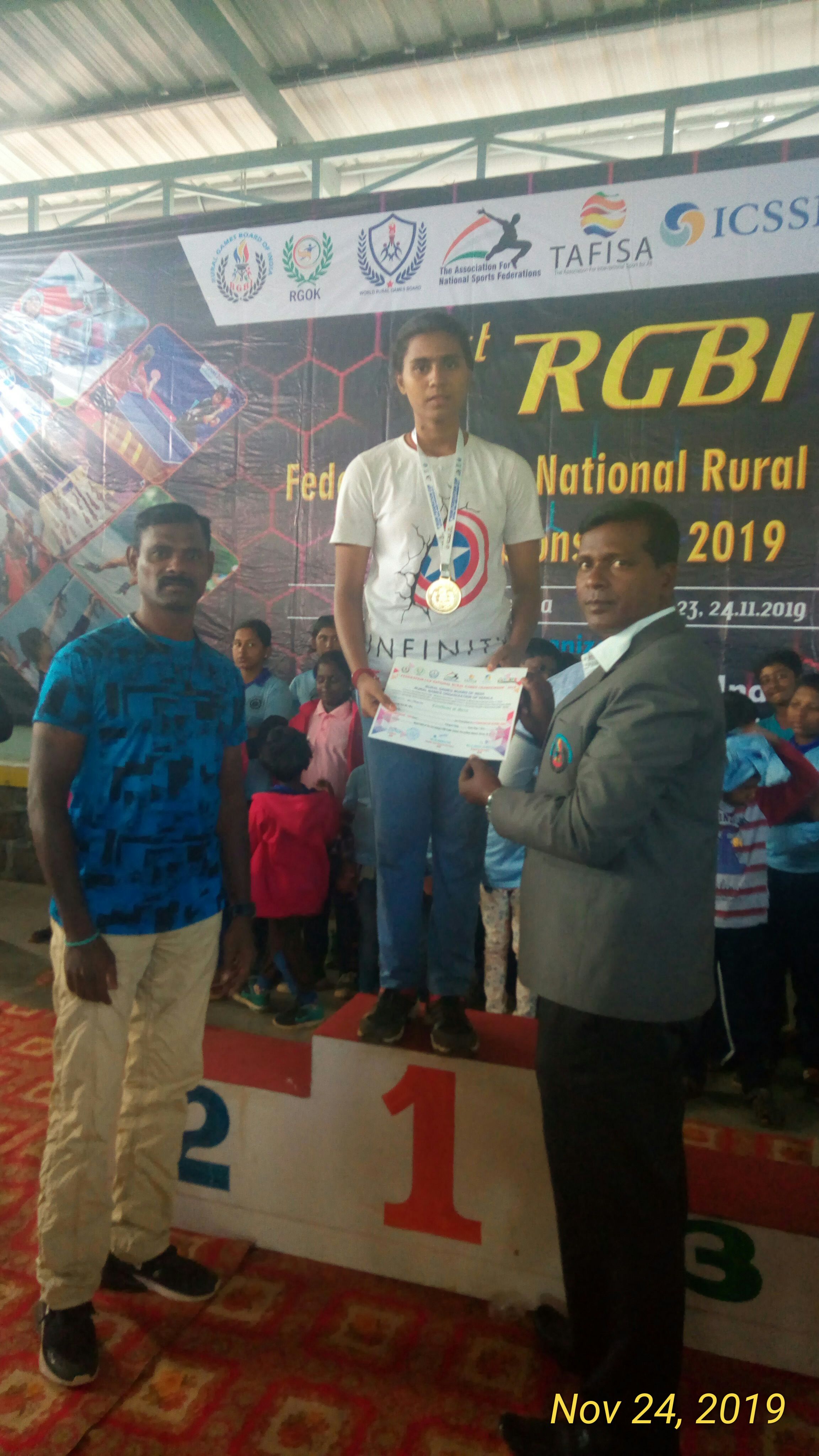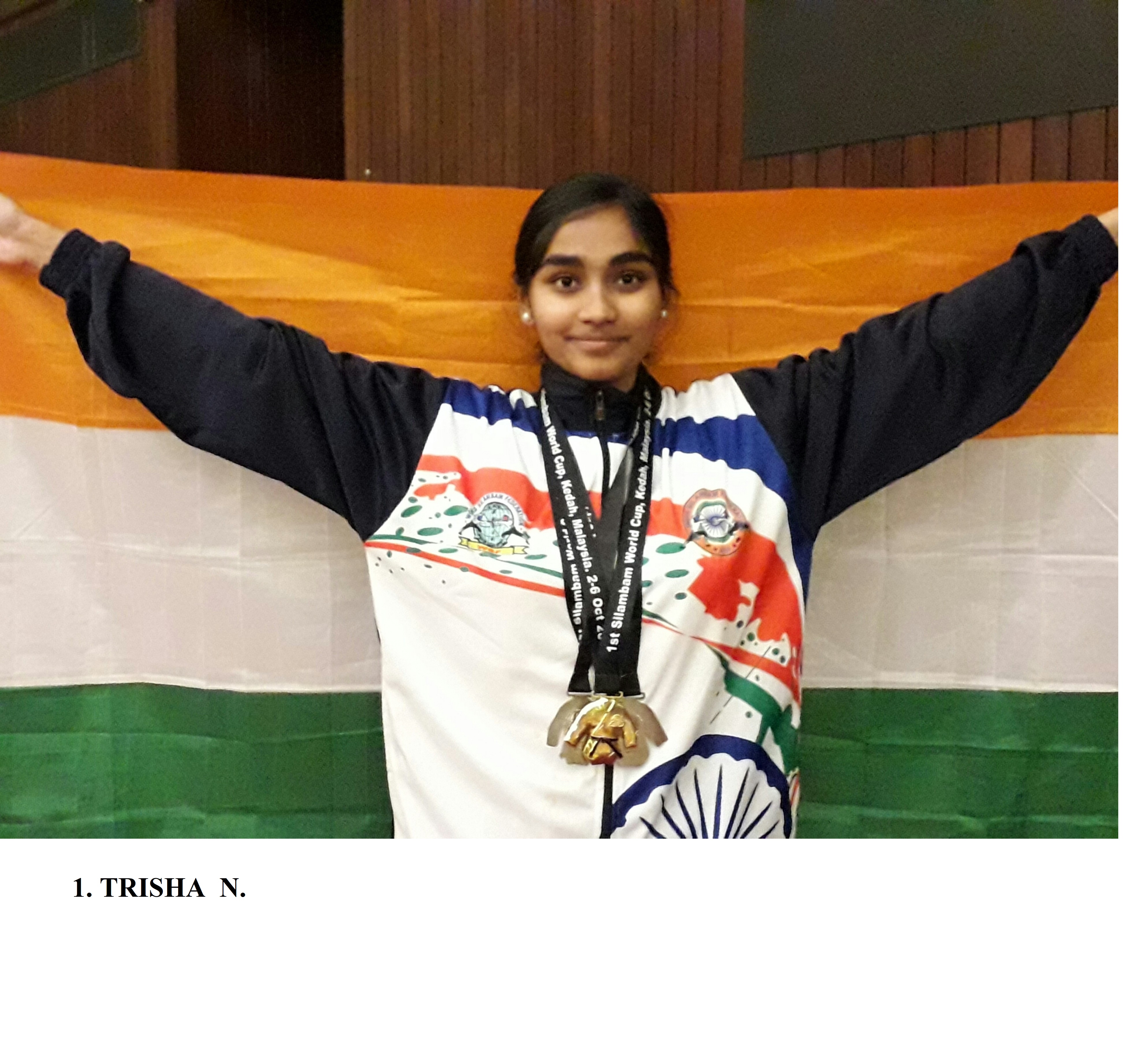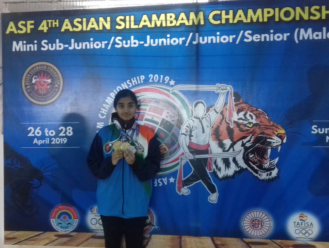 Trisha N (Std XII) bagged a gold medal and two silver medals in Junior category at the International Silambam world cup competition held in Malaysia during October 2019 in which competitors from more than ten countries participated. She also secured two gold medals and a silver medal under the junior category in the 4th ASF Asian Silambam Championship held in Malaysia during April 2019.