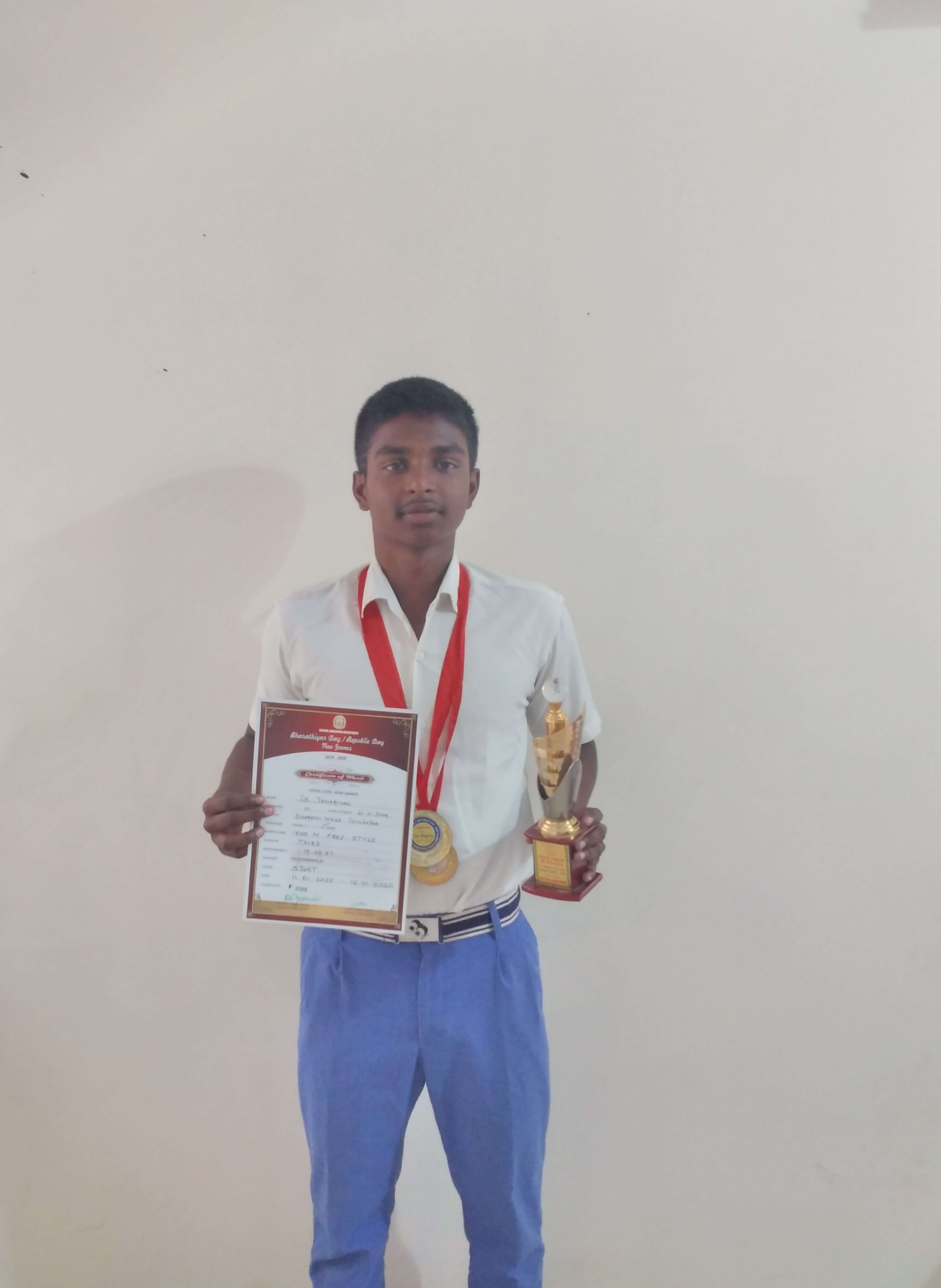 Janarthan S B (Std XI) earned an impressive bevy of gold medals at the State level 200 mts butterfly, 400 mts and 1500 mts freestyle swimming competition organized by the Sports Development Board of Tamilnadu during February 2020. He also won the prestigious Chief Minister’s Trophy with élan. He settled at the significant tenth place in the National level Swimming Competition organized by SGFI during November 2019 in Delhi.